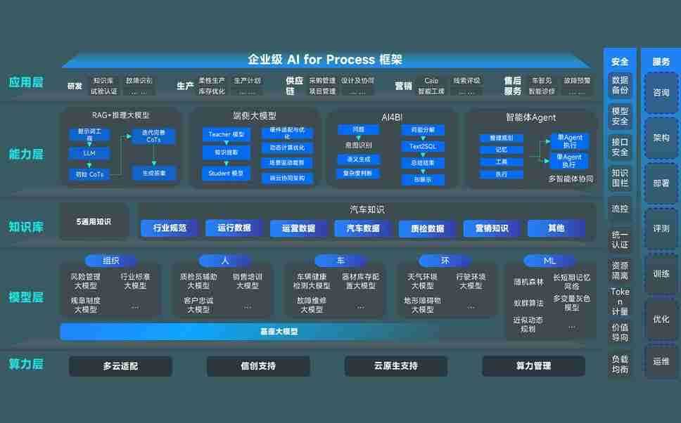 端到端的一站式AI工作空间深度融合了从企业战略规划到日常经营的全流程业务板块,,,定向解决车企内部领域多、、部门多、、、链条长、、场景碎片化等难题,,,支持车企快速构建以AI为核心的生产力写作体系,,,实现任务执行与AI能力的无缝集成与交互